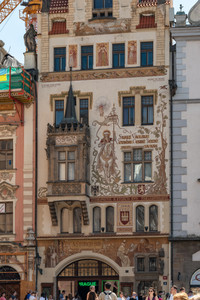 Our first experience with the Prague streetscape. It was about like I had imagined it but also much more interesting and dynamic. Prague, unlike Berlin, had survived WWII relatively unscathed. As a result, there are beautiful buildings representing all of the major periods of architectural history within the city. It is a wonderfully complex and layered built environment, filled with unexpected colors, sculptured facades, ornate entrances, and incredibly crafted fenestration. A feast for the eyes.